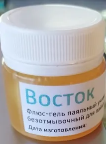 Флюс «Восток» данный липкий спаечный флюс на базе соединении чистой перегонной канифоли и абсолютно гидрогенизированнойканифоли, с маленьким дополнением органичных активаторов. Флюс позволяется применять для паяльных устройств с жарким воздушным потоком, инфракрасных паяльных устройств и для ручной работы с помощью пайки паяльником. Фрагменты флюса нет необходимости в необходимой промывке, но в полной степени несложно снимаются естественными разбавителями. Он имеет хорошую активность, и годиться ко всем свинцовыми и бес свинцовыми сплавами, способен использоваться для широкого спектра применений.