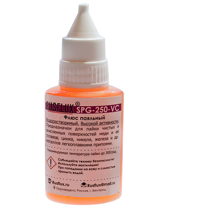 Водорастворимый флюс SPG-250-VC высокой активности используется для пайки чистых и умеренно окисленных поверхностей меди и её сплавов металлов легкоплавкими припоями. Так же используется для пайки SMD и BGA монтажа. Остатки флюса SPG-250-VC легко удаляются водой и универсальными растворителями. Температура пайки до 300грС.